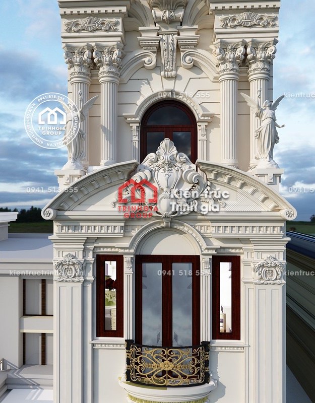 2. Thông tin chi tiết và phối cảnh 3D, mặt đứng về sự phá cách kiến trúc Pháp trong bản vẽ thiết kế nhà phố 5x20m - Mã Số NP1520