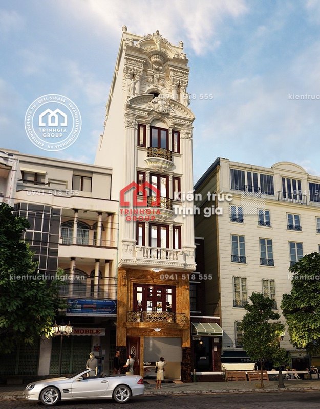 Mẫu thiết kế nhà diện tích 5x20m được xây dựng kiên cố bề thế với chiều cao tới 6 tầng, chưa hết họa tiết hoa văn ngoại thất nổi bật càng mang đến những ấn tượng sâu sắc với bất cứ ai nhìn vào. Sự kết hợp tinh tế và ăn ý giữa các tông màu không làm rối mắt người nhìn mà càng bị thu hút, lôi cuốn bởi sự ấn tượng và độc đáo của mẫu thiết kế nhà phố này. Với đặc trưng của các thiết kế nhà phố trong kinh doanh đó chính là hệ thống cửa ở tầng 1, luôn tiện lợi đảm bảo an toàn cho việc giữ xe. Đặc biệt đối với thiết kế nhà phố này, các họa tiết hoa văn vô cùng đẹp, chú trọng tới từng chi tiết mang lại cho ta vẻ đẹp choáng ngợp, cầu kì và lộng lẫy.