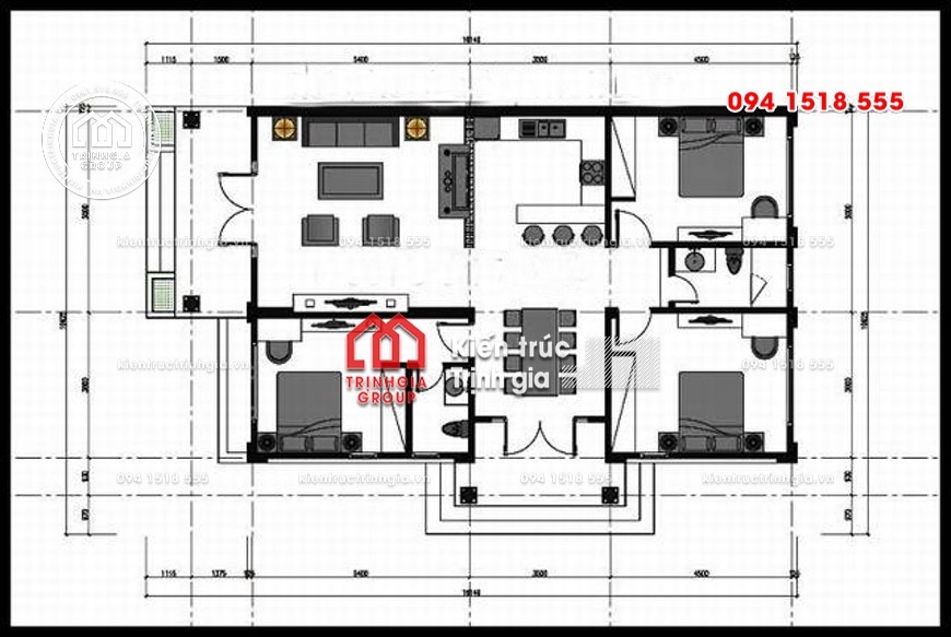 Loại hình:Mẫu nhà cấp 4 nông thôn có 3 phòng ngủ đẹp diện tích 120m2